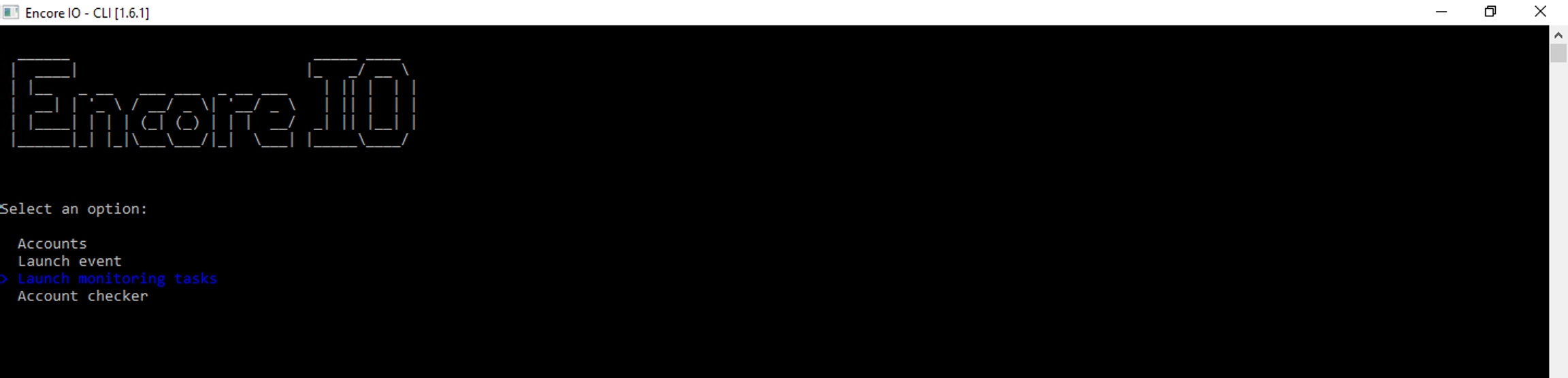 Open EncoreIO.exe > Module > Run Launch monitoring tasks > Choose Task