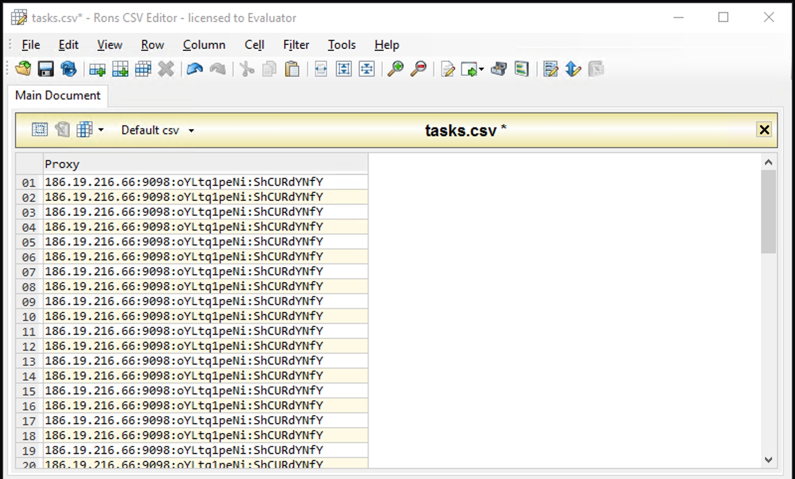 Open tasks.csv file with Ron's editor.