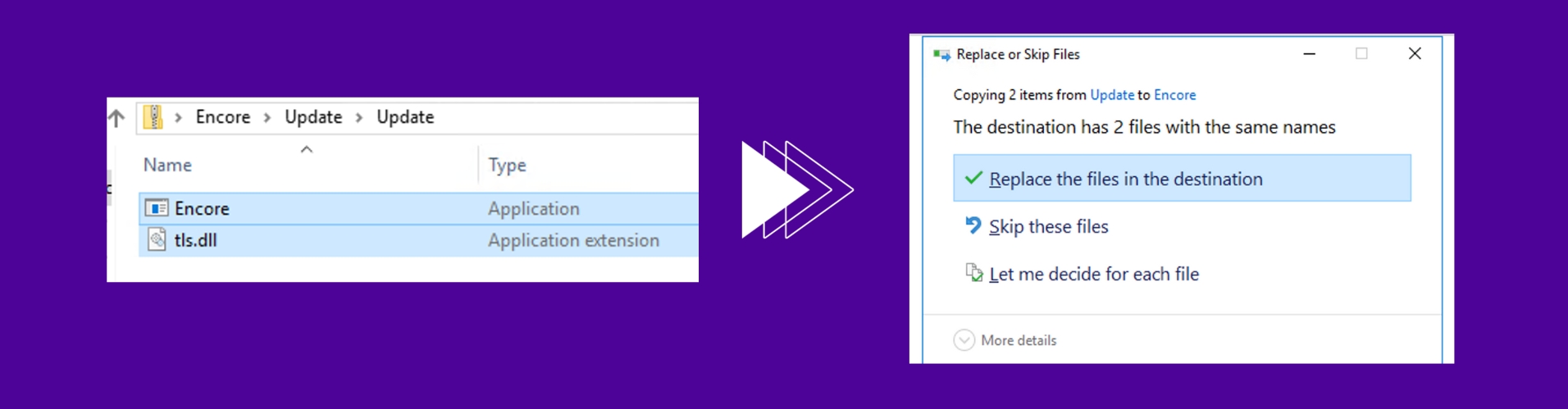 Updatefolder and replace it inEncorefolder with replacement.